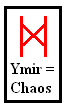At the same time, another life-forming creation has taken place, even before the creation of Borr. This is the first Giant known as Ymir. Ymir represents the formation of Vrilic energy into an uncontrolled form lacking order, and thus the principle of Chaos. This principle is the first principle of nature. All things eventually breakdown and decay unless it is maintain and re-nourished. We can see this in the many ghost towns in the western United States. If we do not constantly maintain the upkeep of something, nature will claim it and it will eventually decay and disintegrate. This happens when life is extinguished in organic material. We can see this principle of Isa and Kenaz within Ymir. Ymir, being a Giant or thurs, is represented by the Rune Thurisaz, or Thurisaz reversed (pointing in the opposite direction) as opposed to inverted (upside down).