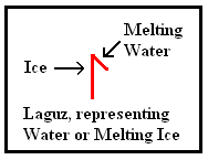 This is represented by the Rune Laguz. Ice (Isa) represents Vril in a pre-Life Force state, before it had the power to create, while the melting ice, forming water, (Laguz) represents Vril as the Life Force with the power to create, because within Vril is the universal power of Male/Female copulation, which is the generative power of creation. If we look at the shape of Laguz, we can see Isa melting. The arm of Laguz, which is pointing downward, is the melt off water from the melting ice.